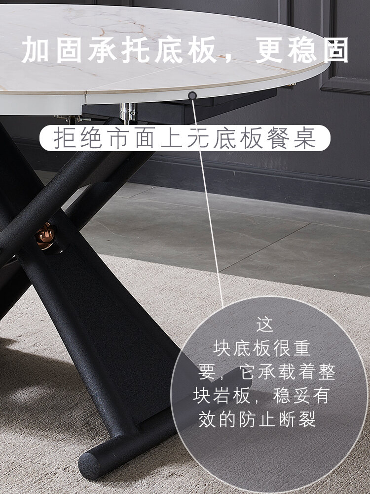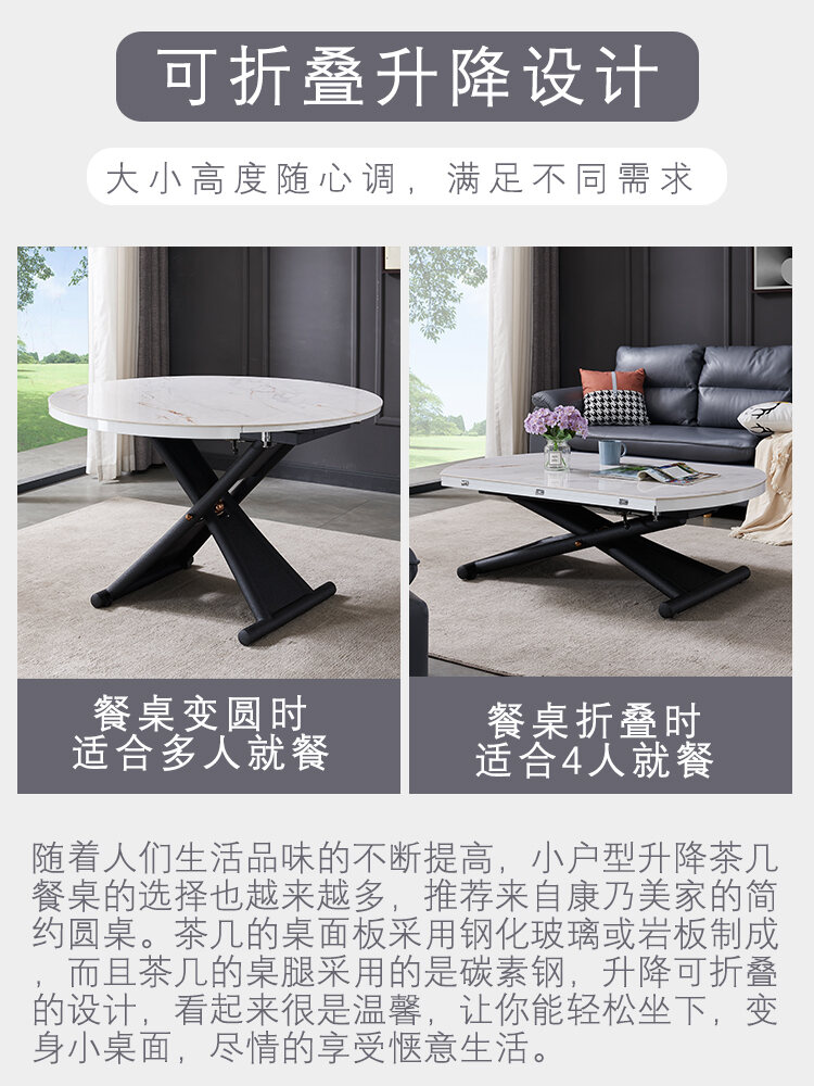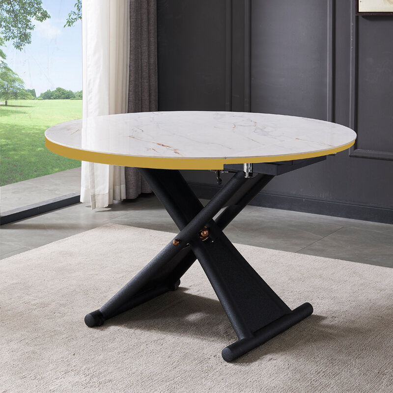 High End Stone Plate Dining Table Home Italian Style Lifting Coffee Table Double-Use Foldable round Dining Table for Small Apartment