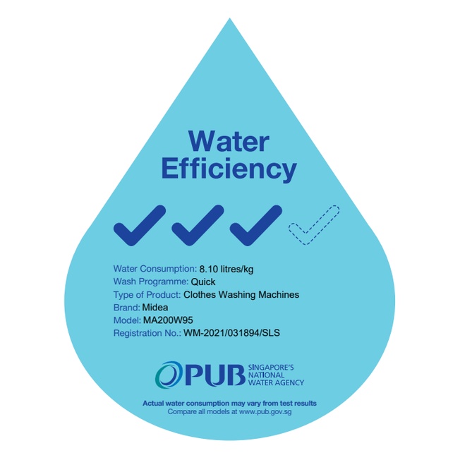 Midea MA200W95 Grey Top Load Washing Machine, 9.5kg, Water Efficiency 3 Ticks