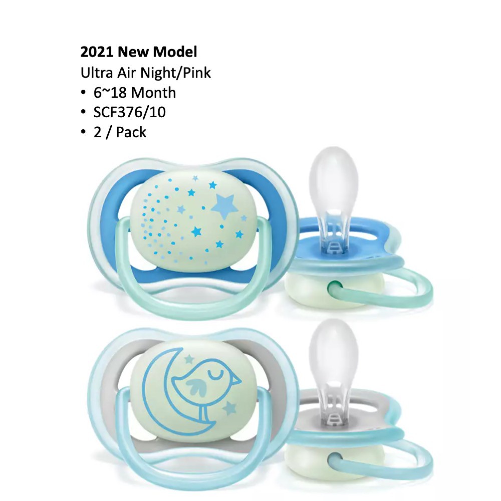 Soothe your baby with a pacifier that lets skin breathe and is easy to find at night. The Philips Avent ultra air night has extra large holes to keep skin dry, and a glow-in-the-dark button so you can see it while the lights are out.Lets skin breathe