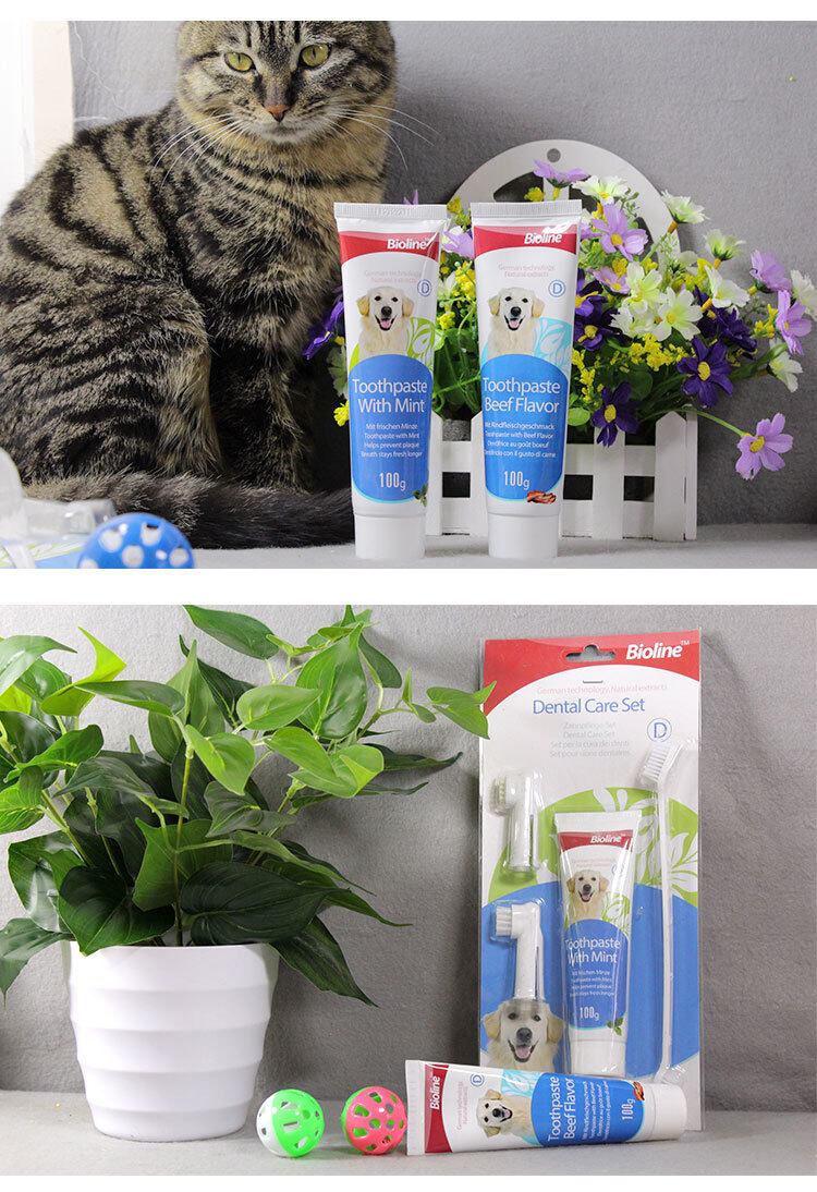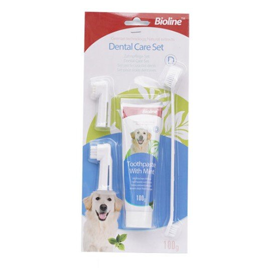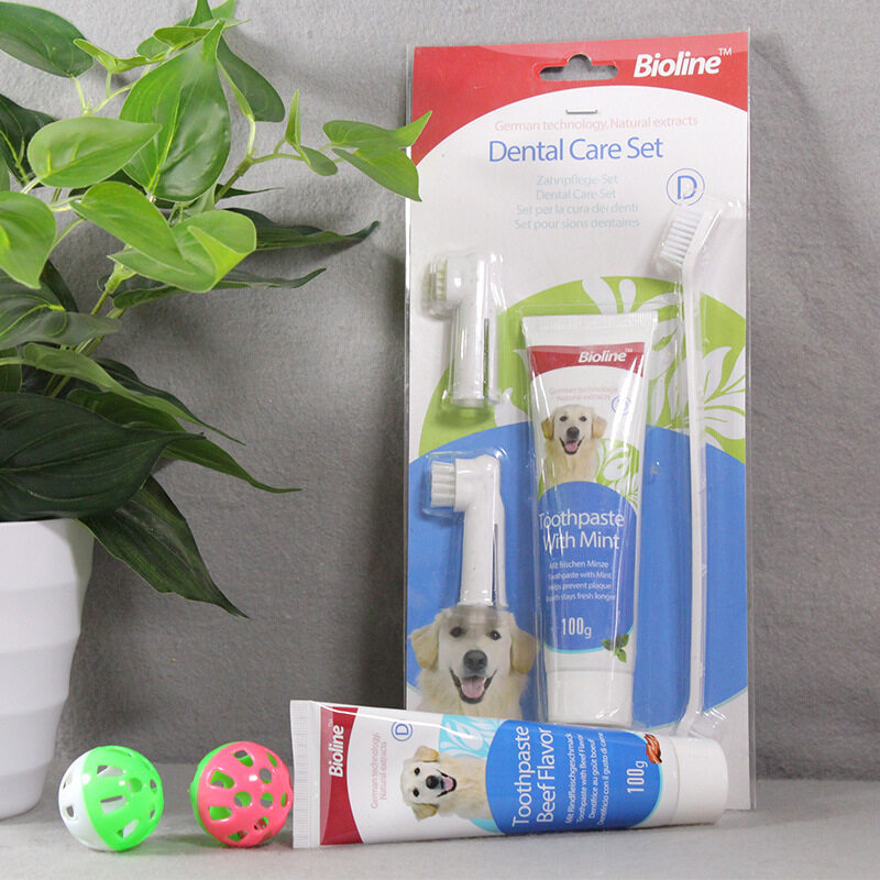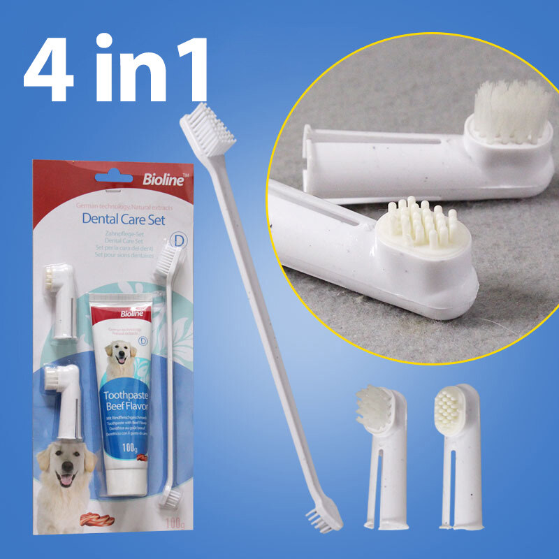 Bioline Set 4in 1 Toothpaste For Dog's Freash Breath Toothpaste odol pasta gigi Dog Toothpaste Pet Toothbrush Pet Dental Care