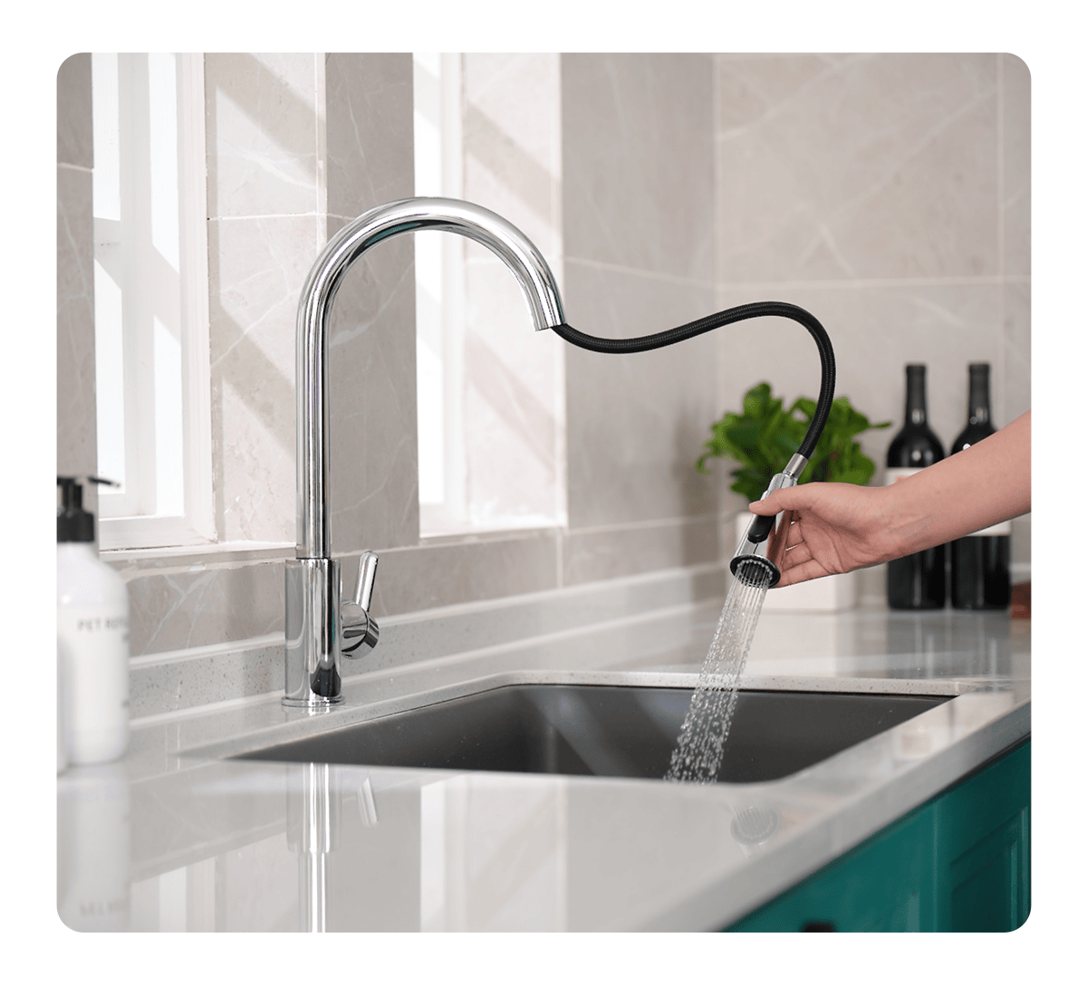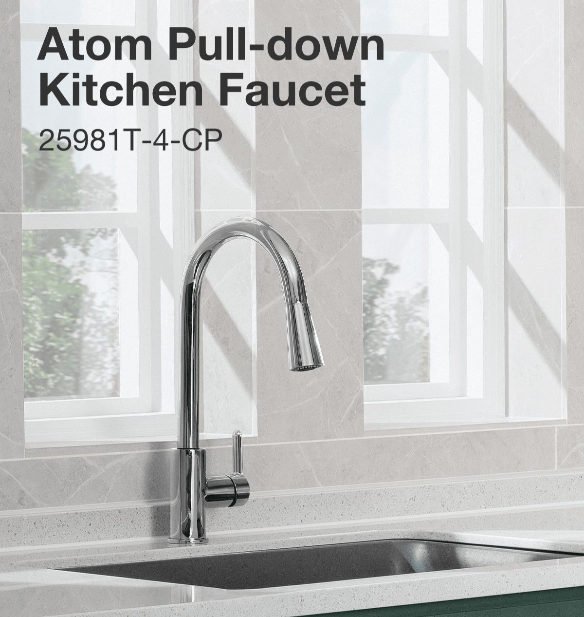 KOHLER Atom Pull-Out Kitchen Sink Faucet, Single-handle, Hot & Cold Mixer, Polished Chrome K-25981T-4-CP