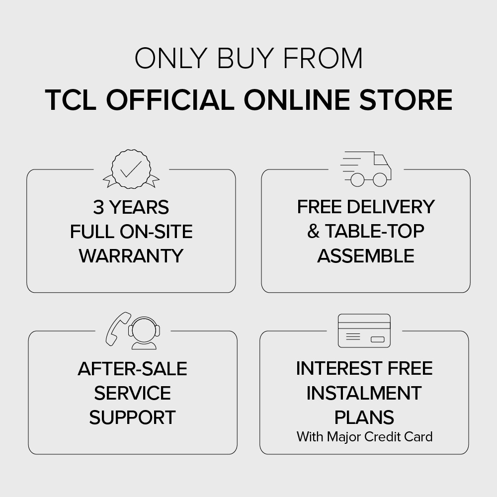 All setup excludes Searching/ Downloading/ Testing of APPs, WiFi connection, gaming console, streaming media, AV equipments, google home and other non-TCL products/ equipments.