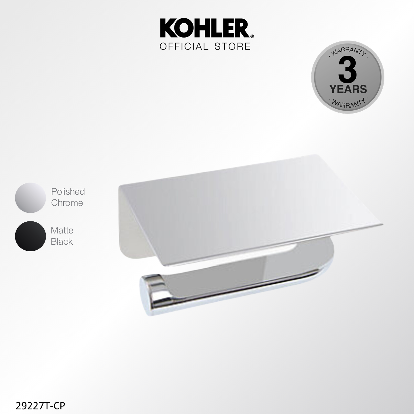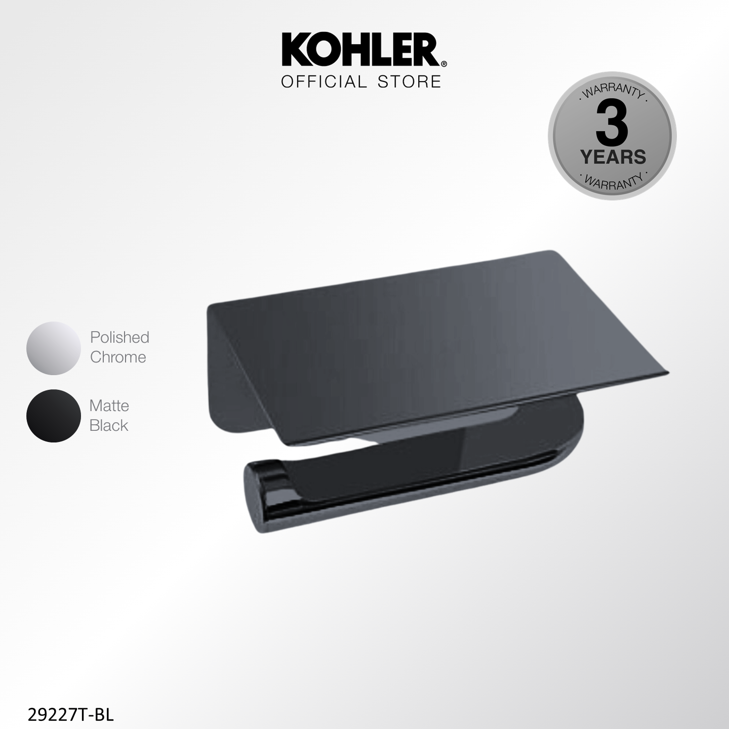 Kohler July Toilet Roll Holder with Tray, Tissue Holder, Polished Chrome K-29227T-CP / Matt Black K-29227T-BL
