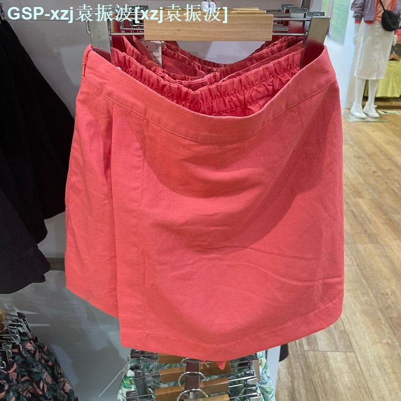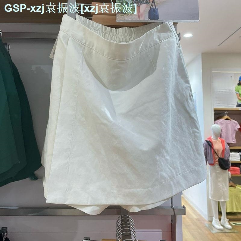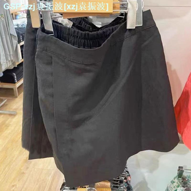 original Uniqlo New Fashion version U home 2023 summer hemp blended hakama pants mini skirt casual ladies slim skirt 456277