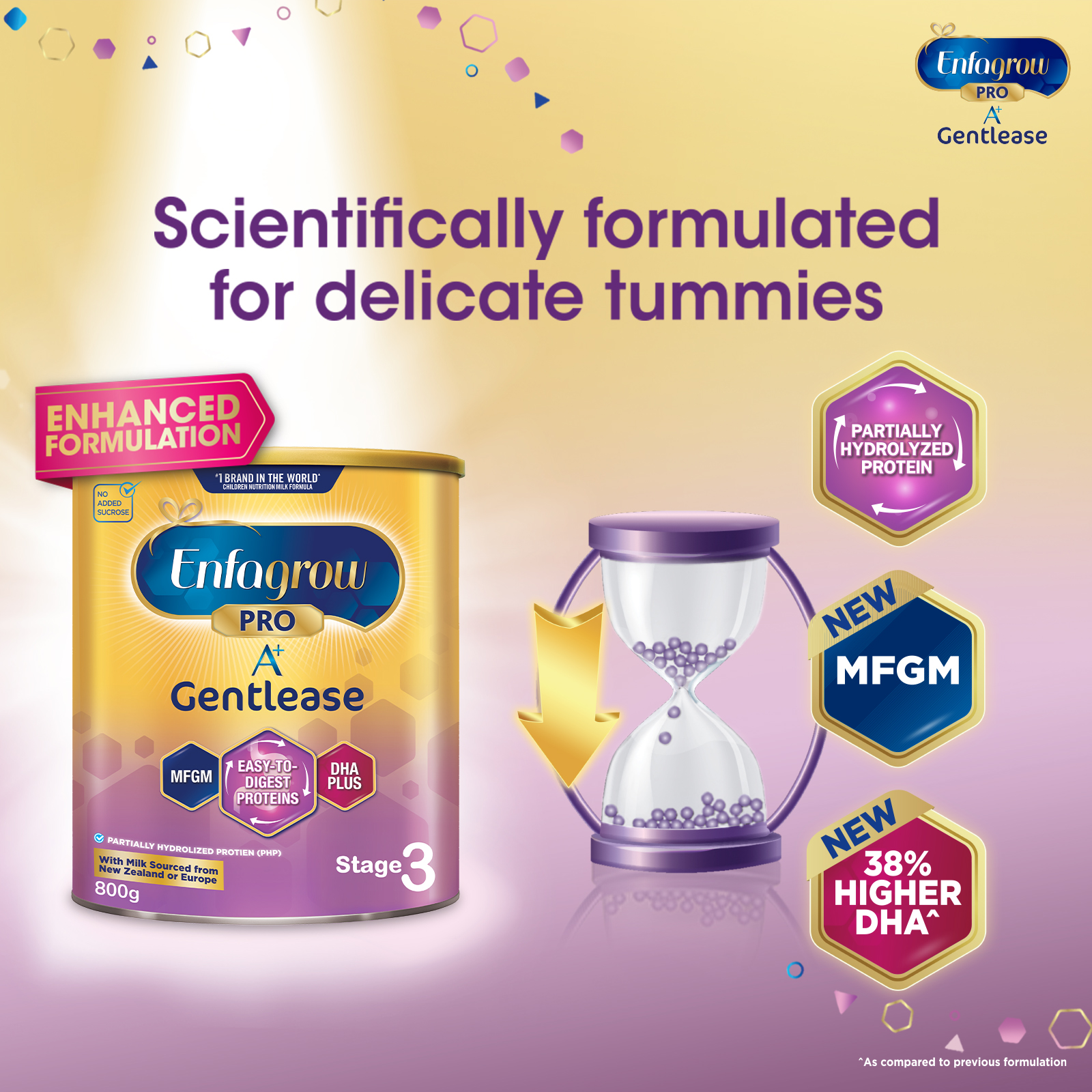 With over 100 years of experience in pediatric nutrition, Mead Johnson Nutrition has scientifically formulated the all-new Enfagrow Pro A+ Gentlease with a unique blend of nutrients that are important for overall mental and physical development.
