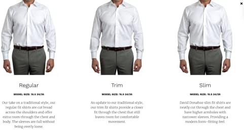 Made with your ultimate comfort in mind, this dress shirt is soft to the touch for all day ease. Constructed with 100% long staple cotton thats built to last and known for its temperature regulating qualities Get the perfect fit with this long sleeve button-up featured in a roomy regular fit with (2) back pleats and plenty of fabric in the sleeves and the body providing extra mobility Black tie ready, this tuxedo shirt will having you noticed for all the right reasons. Dress to impress effortlessly when you pair this with a tux or on its own with your favorite pair of dress pants Appropriate for a variety of formal occasions like weddings, date nights, or special events! Detailed with all the stylish staples including a spread collar, french cuffs, a french placket, and a pair of silver plated collar stays David Donahue luxury dress shirts are selectively constructed from the finest materials, making sure each product keeps its initial quality throughout each wear #1,345,286 in Clothing, Shoes & Jewelry ( ) #29,636 in