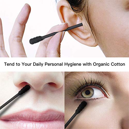 tifanso 200 Count Black Cotton Swabs, Natural Black Double Tipped Cotton Buds, Cruelty-Free Ear Swabs, Chlorine-Free Hypoallergenic