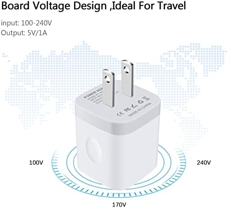 Wall Charger Adapter USB Charging Block, 5Pack Single Port USB Plug in Charger Cube Box Power Blocks Brick Charger Station Compatible with Samsung Galaxy A53 A13 A54 A20 S23 S22 S20 S21 Universal Compatibility: Single Port USB Wall Plug compatible for Samsung Galaxy Note 21/20 Ultra, S21+/S21 Plus/S21Ultra ,S20 FE/S20 Plus/S20 Ultra 5G , A20 A50 A51,A70 ,A71 ,A10e ,A11,A21,A01, S10E S10 + S8 S9 Plus S8 S9 Active ,Note 10 9 8 ,LG Stylo 6 /5/4 Plus, K51, G7 G8 V35 V40 V50 V60 thinQ, G5/G6/V20 V30 Q7 Q8 Plus ,Motorola Moto G7 Power/Paly/Plus ,G6/G6 plus, X4 Z3 Z2 Z Play /Force, Google Pixel 4XL /3A XL/3/3XL/2 Safety Certified Charger Block : this usb block charging wall plug Certified by UL, FCC, CE, ROHS, and has a fuse-protective system to defeat extreme working condition, prevent Against to Overheating, Overcharging And Over Currents, and Short-Circuit Protection, this cube charge your Phone at a high speed ,5V/1amp charging box, 1.5 times faster than conventional phone charging plug Compact for Travel Brick: Weight is 1.59 ounces, Dimensions 1.3*1.5*1.7 inches ,Robust Bright exterior resists wear, scuffing, and scratching, this so small phone charging brick make it easy to carry and store, you can charge at home or office, lightweight and compact size make it perfect for travel and easy plug in the wall outlet Smart Charging Adapter : the phone cube charger adapter with Smart IC Tech Automatically detects and adjusts the charging current to obtain the fastest ,and automatically stop charging when your phone power is full, which can maximumly protect your phone charger