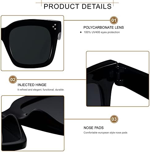 ANDWOOD Oversized Sunglasses For Women is fashion style brand designer,It is suitable for big face, show womans unique and fashion.The most fashionable classic retro design, the perfect cover your eyes. [UV Protective] Big square sunglasses with UV400 rated protection, can block 100% of both UVA and UVB radiation and fully protect against harmful ultraviolet rays. Ladies will love to wear these big sun glasses in the warm light of summer or on those cold winter mornings. HIGH QUALITY - Retro Square Sunglasses used lightweight plastic material have a durable frame, thick but slim, not easily deformed, long wear does not press nose give womens a unique and comfortable wearing experience. The Oversize square shape frame makes the overall look of the sun glasses more stylish, trendy, cool, sexy and cute. Perfect Fit - These Large Sunglasses is suitable for walking, traveling, driving, shopping, taking photos, beach, party, and other outdoor activities, etc; also be a nice gift for festivals. Womens Vintage Sunglasses: ANDWOOD fashion shades we provide 30 days money back warranty after you purchase it . If you have any questions about our sun glasses , please do not to hesitate and feel free to contact us. #10,989 in Clothing, Shoes & Jewelry ( ) #112 in