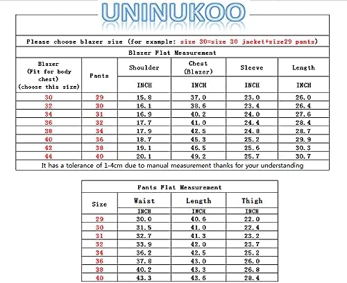 【How To Choose Size】Please choose the size based on your chest.【size 30 = 30 blazer +29 pants】.【size 32 = 32 blazer +30 pants】.【size 34 = 34 blazer +31 pants】.【size 36 = 36 blazer +32 pants】.【size 38 = 38 blazer +34 pants】.【size 40 = 40 blazer +36 pants】.【size 42 = 42 blazer +38 pants】.【size 44 = 44 blazer +40 pants】. 【3 Piece Suit 】1* 1 Button Business Jacket+1* Slim Fitted Trousers+1*Formal Vest.Our suits are sold in sets. If you encounter any sizing or other issues, please contact us and we will try our best to accommodate your request within 24 hours. 【Design】Suit Blazer: 1 Button Closure, Notch Lapel,Soft Full Inner Lining; Pants: Flat Front, Slim Fit; Waistcoat: Adjustable back buckle.Our stylish and modern men's suits are carefully crafted using 3D cutting technology to bring you comfort while also giving you an elegant and stylish look. 【Suitable Occasions】This men suits slim fit 3 Piece is suitable for multiple occasions, such as wedding,business,daily life,parties, prom,casual,dinner,homecoming. 【Care Instruction】Dry cleaning or hand-washing in cold water. #763,524 in Clothing, Shoes & Jewelry ( ) #708 in