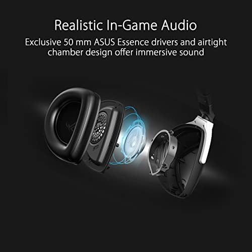 Low-latency wireless 2.4 GHz and Bluetooth connections provide greater freedom.Specific uses for product : Gaming,Personal,Business Exclusive 50 mm ASUS Essence drivers and airtight chamber design offer immersive sound AI Beamforming Microphones with AI Noise Cancelation ensure exceptional voice pick-up and reduce 500 million types of background noises for clear in-game communication Fast charging provides 3 hours of use with a 15-minute charge, plus up to 25 hours of total battery life for non-stop gaming Lightweight design with ergonomic D-shaped ear cushions provide long-lasting comfort Water resistance: IPX4 splash-proof water resistance adds protection.