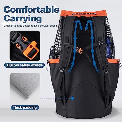 【Large Capacity & Keep Organized】- GoHimal scuba bag measured in 29”x16”x16”and equipped with multiple pockets to accommodate and organize all your scuba diving or snorkeling equipment like fins, goggles, mask, wetsuit, regulator, shoes, BCD, and more. 【Lightweight & Breathable Design】- Durable PVC coated mesh and bottom grommet allows to drain water easily and air dry quickly, ensuring that your gear stays dry and protected from potential damage caused by seawater and humidity. 【Delightful & Thoughtful Details】- Fluorescent strips making it easier for divers or their equipment to be spotted by others; adjustable chest and waist straps helps to relieve the stress of shoulder;built-in safety whistle in case of any emergency. 【Comfortable and Portable 】-This diving bag is designed in a backpack style, equipped with comfortable padded straps and back, allowing you to easily carry your gear during long-distance travels, providing a comfortable carrying experience. 【Durable and Long-lasting】- XL Scuba Diving Bag is constructed with high-quality materials, ensuring excellent durability and a long lifespan, capable of withstanding the demands of various diving and snorkeling activities.