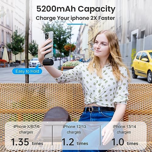 【Latest Version Mini Portable Charger】With Import Intelligent Controlling IC, Using high-quality materials,newest anti-oxidation process plug, superior durability and scratch resistance, after 100% checked and tens of thousands of continuous drop test, our plug interface will not break, please rest assured to purchase. 【Instant 20W Fast Charging】The portable charger plugs directly into your phone, fast charging your phone anytime, anywhere, no need to carry a cable with you. It can charge iPhone13 from 0% to 60% in half an hour. ❤❤❤Warm Tip: NOT for Android Samsung or other USB-C devices!!! 【Potable Charger Designed for iPhone】Portable iPhone charger is widely compatible with iPhone 14, iPhone 14 Pro, 14 Pro Max, iPhone 14 Plus,iPhone 13, iPhone 13 Pro, iPhone 13 Pro Max, iPhone 13 Mini, iPhone 12, iPhone 12 Pro, iPhone 12 Pro Max, iPhone 12 Mini, iPhone 11, iPhone 11 Pro, iPhone 11 Pro Max, iPhone XR, iPhone 8, iPhone 8 Plus, iPhone X, iPhone 7, iPhone 7 Plus, iPhone XS Max, iPhone XS, iPhone Se, iPhone 6s, and also other iPhones 【Ultra-Compact Power Bank】Size of a lipstick,not need a cord it’s easy to slip in your pocket or your purse and when you need it you have a charger right then and there.Light weight but big Capacity, an ideal charging companion for short travel. 【What You Get】 2 Packs of Mini Portable Charger 5200mah, 2 x USB C Cables, 1x User Manul. 2 Year Warranty and 24H Friendly Customer Service.
