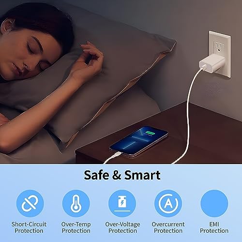 20W High-Speed Power: Fast charger equipped with 20W PD 3.0 USB Type C power delivery wall plug, provides Max 20W output power, charging your iPhone from 0-50% in just 30 minutes, saving over 1.5hrs for you. Charge your smartphone up to 70% faster than standard 5W charging. Safe & Intelligent: 20W USB C charger block equipped with a smart chip, can detect each device’s power needs and adjusts the power flow automatically, Protect Your Devices from over Heating, Short-circuiting and over Charging.The shell is made of high quality ABS material, heat resistance and low temperature resistance, chemical resistance and excellent electrical properties. Wide Compatibility: Type c charging block is optimized to work flawlessly with all your USB Type C devices including smartphones, tablets, wearables and more. Compatible with iPhone 15/15 Plus/15 Pro/15 Pro Max/14/14pro/14pro max/13/13 Mini/13 Pro/13 Pro Max/12 Series/iPhone 8 and later, AirPods Pro, iPad Mini 6, Android phones like Samsung S22/S21, Switch and more USB-C-enabled devices. Compact & Lightweight: Extremely compact size & travel-friendly design fits into your pocket or bag easily without occupying too much space and ensures incredible portability wherever you go. 2 packs allow you to be more selective, one to keep for home use and one to take to the office, school, traveling, etc. What You Get: 20W USB C Power Delivery Charger - 2PACKS(cable not included). Worry-free 12-month warranty and 24/7 customer service, life time technical support.