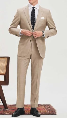 Amyox Men's Slim Fit 2 Piece Suit, Two Button Solid Suit Jacket Pants Set, Wedding Prom Suit