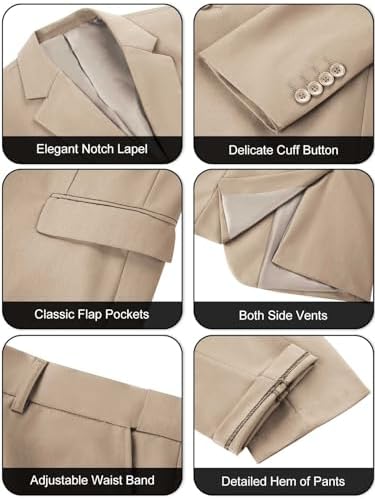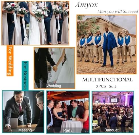 2 PIECE SUIT SET - This stylish suit set features a two-button blazer and a solid suit pants. JACKET : Notch lapel, 2 front flap pockets, 1 chest slip pocket, 3 interior pockets, Side vents, Fully lined. PANTS : Flat front, Front slash back welt pockets, Adjustable waist, 2 back button pockets, 2 side slip pockets. MODERN STYLE -- Amyox formal/wedding suit set is with slim-fitting cut from 3D draping. Suitable for casual or formal wear. It will be easier to present your perfect figure. You will become the focus of the occasion throughout the day after you wearing it. OCCASIONS -- Easy to match with any formal/business tuxedo shirt in wedding, party, business, graduation, date, work, meeting, prom, banquet and homecoming. It is also a good choice as a gift for your friend, father, brother and son. CARE INSTRUCTION -- If conditions permit, dry clean recommended. If you have to hand wash it, please keep the water temperature below 40 degrees and wash gently. Steam ironing, hang the suit on the hangers when you are not wearing it. HOW TO CHOOSE SIZE - Please only look at our size measurements chart in image 2 and 3. If you are not sure, we strongly suggest you to inquire about size first. You can tell us your height, weight, chest circumference and waist circumference and we will figure out the best size for you. #33,233 in Clothing, Shoes & Jewelry ( ) #39 in
