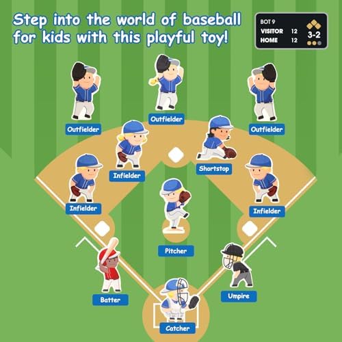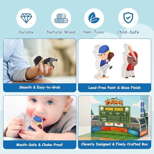Toddy Woody Baseball Playset Toy,Baseball Basics Educational Tools,Includes Wooden Player Figures,Cardboard Ballpark Stadium,Sports Board Game,Mini Table Pocket Baseball for Toddler Toy,Baseball Intro