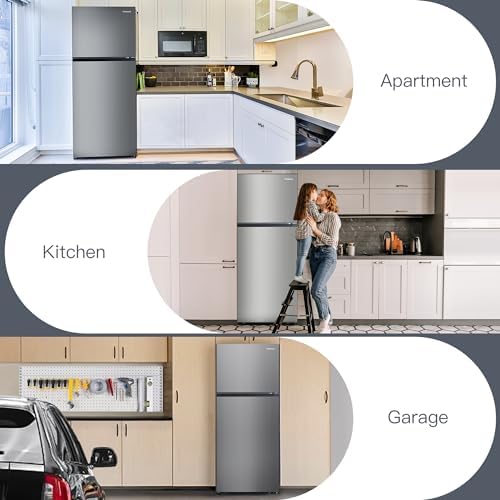 THFRIONE Top Freezer Refrigerator 30-Inch with 17.6 Cu. Ft.Capacity, Adjustable Thermostat Control, Full Size Freestanding Frost Free Fridge for Garage/Office/Home/Apartment, Stainless Steels Grey