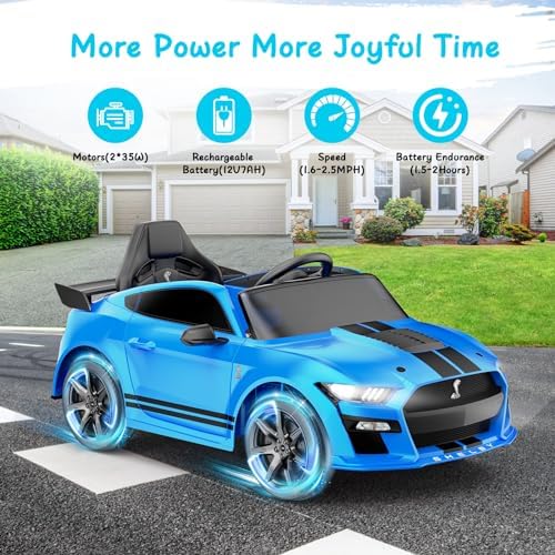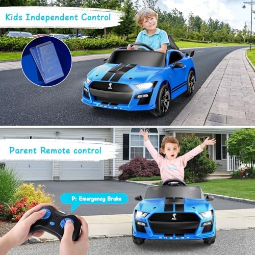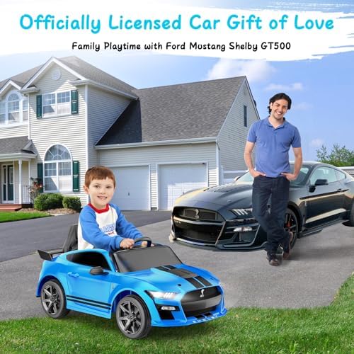 YunTopKids 12V Licensed Ford Mustang Shelby GT500 Ride On Car,Electrical Vehicle Toy for Kids,Battery Powered Car with Spring Suspension/Parent Remote Control/Sound System for Ages 3-5 Years,Blue